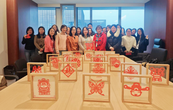 其次,通過剪紙活動,大家相互學習、交流探討剪紙技巧,進一步培養團隊合作能力,提高集體凝聚力。剪紙作品完成后大家交換窗花,以窗花為寄托,互相送出在生活、工作、學習等方面的美好祝福。