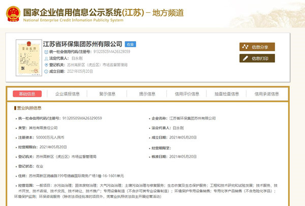 江蘇省環保集團蘇州有限公司2021年度信息公開事項